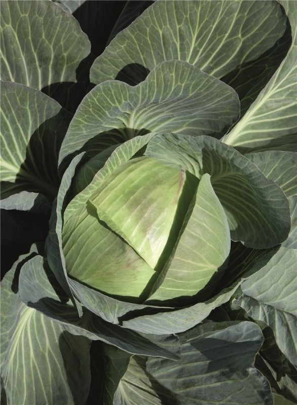 Растение адаптировано к различным агроклиматическим условиям и, что особенно важно, выдерживает дефицит влаги благодаря эффективной корневой системе. Ключевая особенность защиты — мощный восковой налет на листьях, который создает естественный барьер и обеспечивает высокую устойчивость к поражению трипсами. Гибрид также обладает устойчивостью к фузариозу (Foc). Кочан округлой формы, компактный, очень плотный, с красивой и отличной внутренней структурой, массой 3-4 кг. Такая структура гарантирует не только великолепный товарный вид, но и превосходную лежкость, что является основной целью выращивания этого гибрида.
