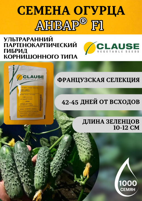 Тип: Раннеспелый (48-54 дня) пчелоопыляемый гибрид F1 огурца