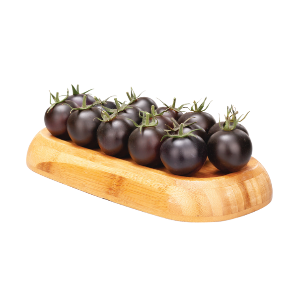 Растение сильнорослое, но с короткими междоузлиями, что обеспечивает компактный вертикальный рост и удобство в формировке и уходе. Листовой аппарат среднего размера. Гибрид идеально подходит для штучного сбора плодов. Плоды небольшие, идеально круглой формы, весом 35-40 г. Их уникальная черта — контрастная окраска: темно-черная (шоколадная) кожица и ярко-красная сочная мякоть внутри. Такой внешний вид делает плоды чрезвычайно привлекательными для подачи в ресторанах, оформления блюд и продажи в премиальных упаковках.