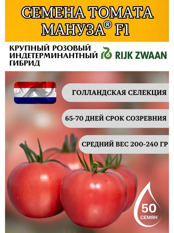 Мануза F1 – это ранний высокоурожайный индетерминантный гибрид розового томата от голландских селекционеров. Идеально подходит для пленочных теплиц и защищенного грунта, обеспечивает стабильный урожай крупных плодов с отличными вкусовыми качествами.