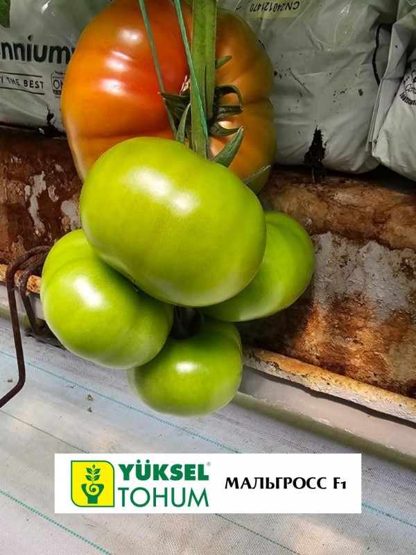Томат Мальгросс F1 (Yuksel Tohum) — среднеранний индетерминантный гибрид с плодами премиального розово-малинового цвета. Растение компактное, мощное, с короткими междоузлиями и раскидистыми тёмными листьями, которые обеспечивают защиту плодов от солнца. Обладает исключительной теневыносливостью и стабильной завязываемостью даже в условиях низкой освещённости. Гибрид имеет комплексную устойчивость к болезням (ToMV, Fusarium, Verticillium, Alternaria) и физиологическим нарушениям (растрескиванию, вершинной гнили).