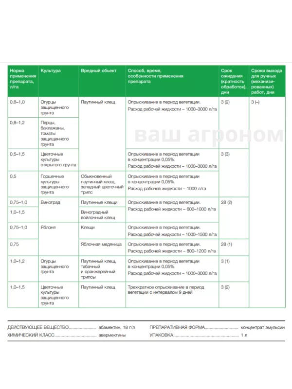 Действующее вещество: Абамектин 18 г/л