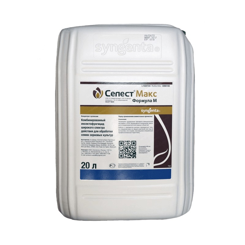 Селест Макс, КС — это комбинированный инсекто-фунгицидный протравитель семян от компании Syngenta, предназначенный для защиты яровой и озимой пшеницы, ярового и озимого ячменя от комплекса болезней и вредителей. Препарат смешан в оптимальных пропорциях, готов к применению. Обеспечивает сбалансированную защиту от вредителей и болезней на начальном этапе роста растения. ХИТ 2-Х СЕЗОНОВ! Усовершенствованная препаративная форма «Формула М» обеспечивает надежное сохранение препарата на семенах от момента нанесения до высева и существенное снижение пыления обработанных семян, повышает их сыпучесть.
