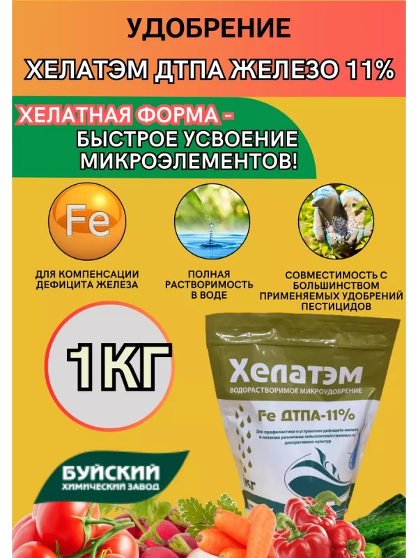 Для достижения наилучших результатов следуйте инструкциям по применению, указанным на упаковке продукта. Хелатэм ДТПА Fe 11% Железо от Буйских удобрений – это надежное р