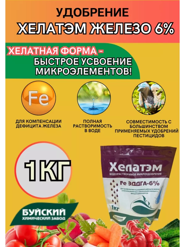 Не упустите возможность сделать ваш сад еще более красивым и плодоносным благодаря органическому микроудобрению Хелатэм ЭДДГА Fe 6% от производителя Буйские удобрения.