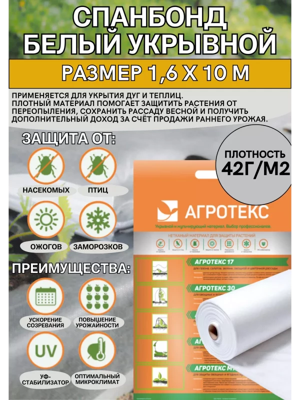 Купить Укрывной материал 1,6м*10м 42 вы можете в компании Ваш агроном, оформив заказ в интернет магазине, или